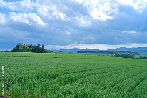 Fototapeta premium 雄大な北の大地に広がる麦畑の情景@美瑛、北海道