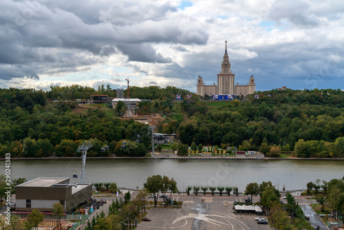 Fototapeta premium Московский университет на Воробъевый горах. Панорама с крыши стадиона Лужники.