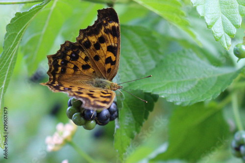 Obraz premium ランタナの実にとまるキタテハ