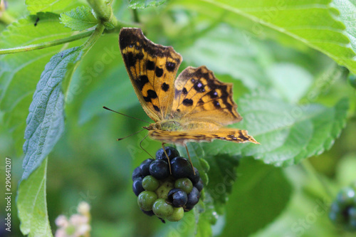 Obraz premium ランタナの実にとまるキタテハ
