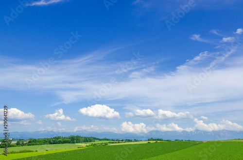 Fototapeta premium 北海道 美瑛 青空と穀倉地帯