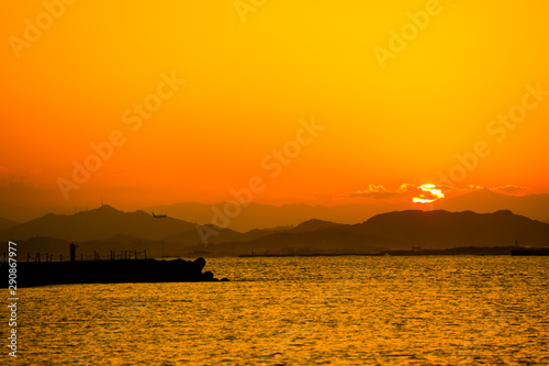 © yuu nakamura, Naklejka premium 太陽と飛行機と海
