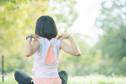 Naklejka premium 公園でヨガをする女性