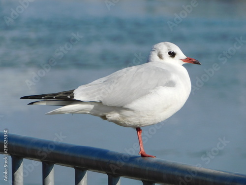 Obraz premium 柵の上で片足立ちするユリカモメ