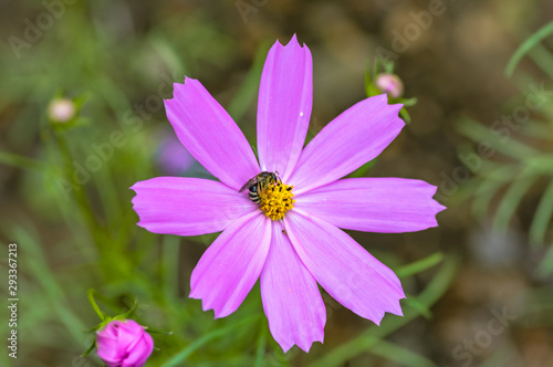 Obraz premium 秋桜とミツバチ