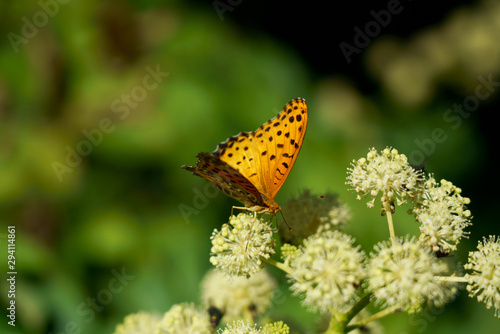Obraz premium ウドの花にツマグロヒョウモン蝶