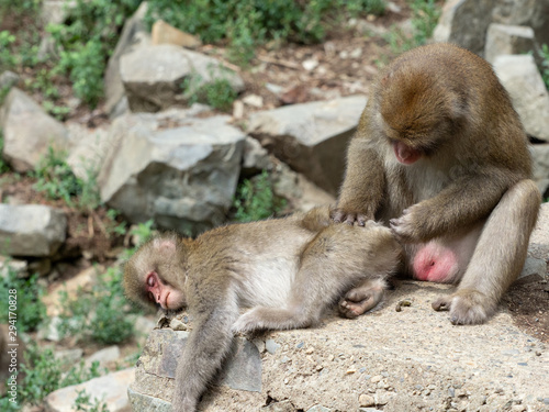 Obraz premium 毛づくろいをしてもらっているサル
