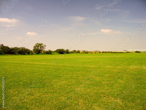 © smtd3, Obraz premium 秋のサッカー場のある江戸川河川敷風景