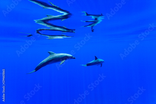 Naklejka premium ボニンブルーの海を泳ぐミナミハンドウイルカ