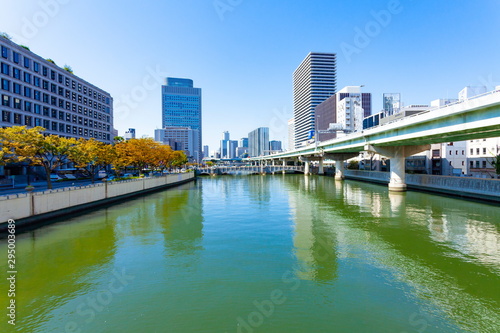 Naklejka premium 堂島川の風景、大阪市北区中之島にて