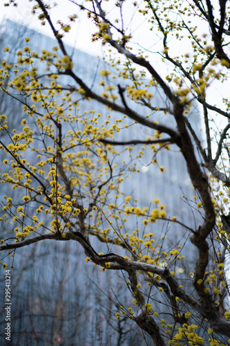 Fototapeta premium 黄色い枝花