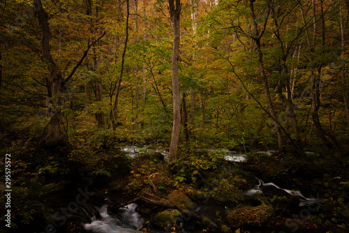 Obraz premium 青森県奥入瀬渓流の紅葉の森の景色