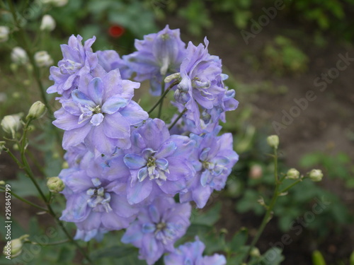 Fototapeta premium Цветок дельфиниума фиолетовый с голубой каймой