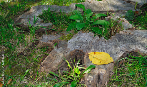 © KSSM tomo, Obraz premium 落ち葉 切り株 素材