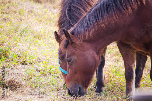© pomupomu, Fototapeta premium 草を食べているウマ2頭