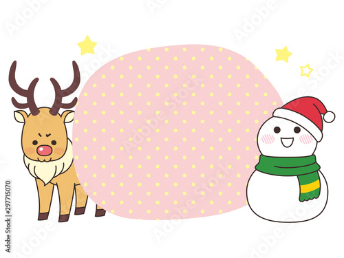 Fototapeta premium 雪だるまと赤鼻のトナカイ 吹き出し クリスマス