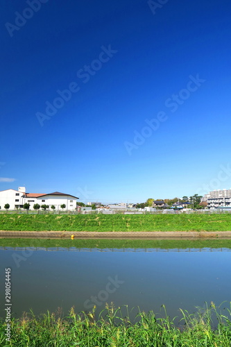 © smtd3, Obraz premium 秋の朝の放水路風景