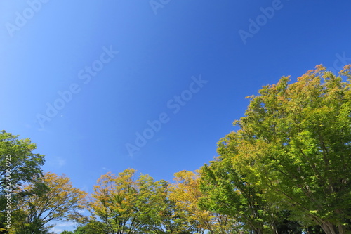 © smtd3, Naklejka premium 秋の公園の欅と青空