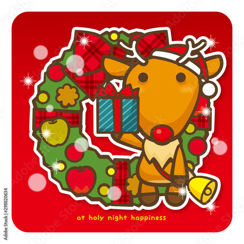 © suzumeclub, Naklejka premium はっぴークリスマス プレゼントお届けトナカイさん(赤)