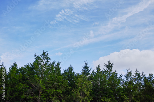 © RewSite, Fototapeta premium 杉林と白い雲のある秋の青空