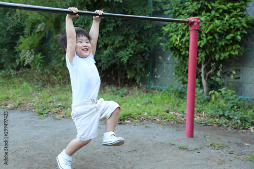 © yamasan, Fototapeta premium 鉄棒の練習をする男の子