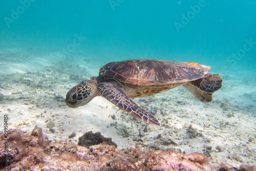 Obraz premium 透明な海を泳ぐウミガメ