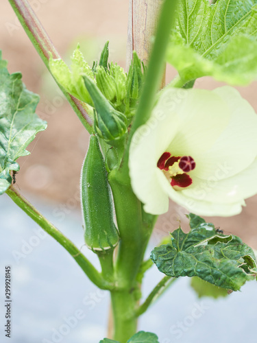 Obraz premium オクラの花とオクラ