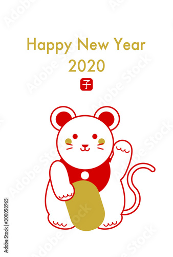 Obraz premium 2020年子年の年賀状イラスト: 招きねずみ