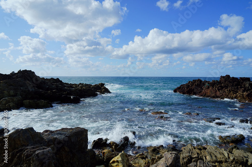 Obraz premium 旅先の日常、青く美しい日本海と穏やかな白波