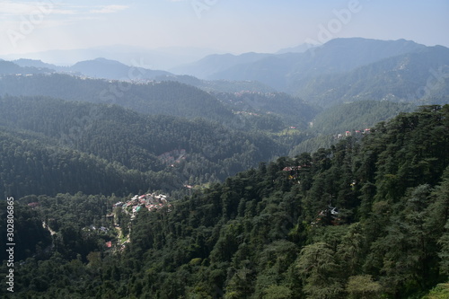 © koujim30, Naklejka premium インドのヒマラヤ山岳地帯 シムラーの街並み 美しい山と青空
