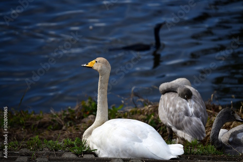 Fototapeta premium オオハクチョウの成鳥、頭が褐色の個体、千葉県、2019年秋