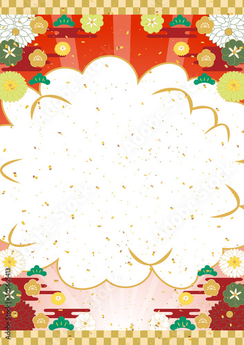 © kid_a, Obraz premium お正月 吹き出し 和風背景