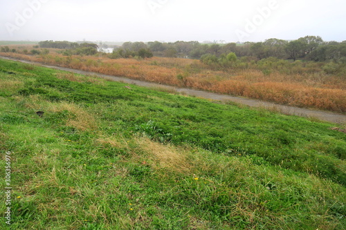 Fototapeta premium 朝靄の江戸川河川敷風景