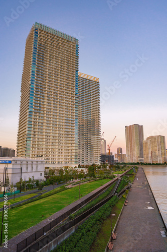 Obraz premium 東京の都市風景 トワイライトの豊洲周辺の風景