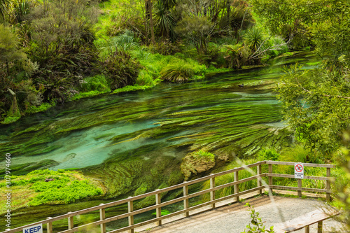 © pespiero, Obraz premium ニュージーランド プタルルのブルースプリングの展望台からの風景と透明で澄んだ川