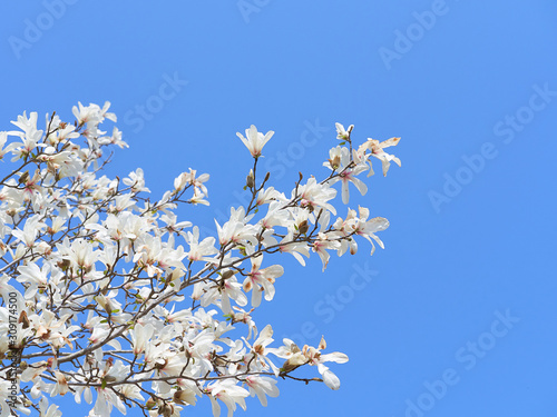 Fototapeta premium コブシの花 青空背景