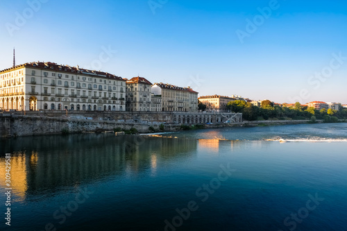 © 健太 上田, Obraz premium トリノ ポー川と街並み 夕方