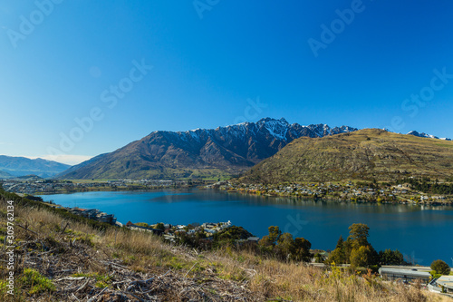 © pespiero, Obraz premium ニュージーランド クイーンズタウンのリマーカブルズ山脈とワカティプ湖