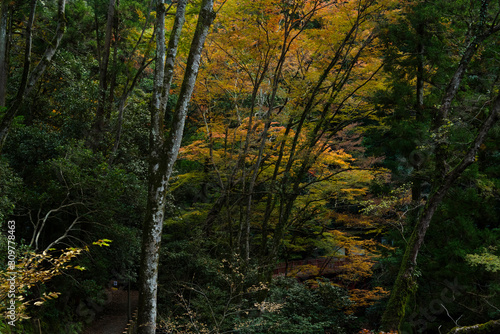 © satoru, Obraz premium 石段のある薄暗い山林の風景