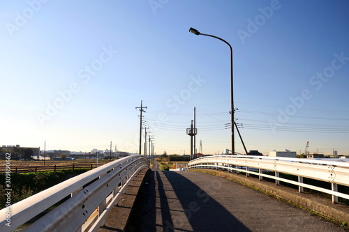 © smtd3, Obraz premium 冬空と農道に通じる橋風景