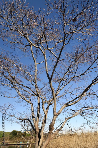 © smtd3, Fototapeta premium 冬空と水辺の花水木の枯れ木