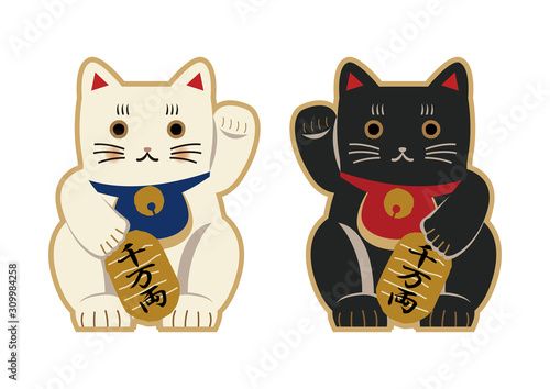Obraz premium 縁起物。招き猫のイラスト。日本の猫の置物。