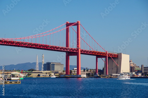 © y.tanaka, Fototapeta premium 海岸沿いの遊歩道から見る若戸大橋