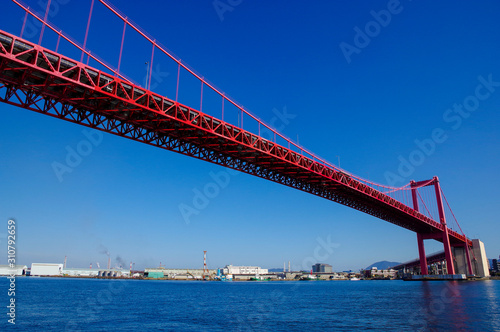 © y.tanaka, Obraz premium 海岸沿いの遊歩道から見る若戸大橋