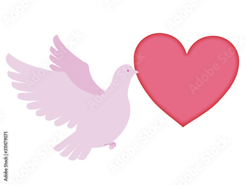 Obraz premium メッセージカードをくわえる鳩 イラスト