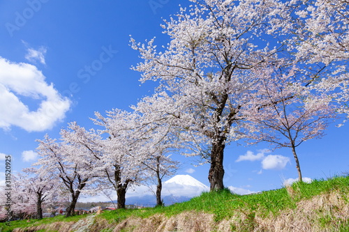 © photop5, Obraz premium 富士山と満開の桜、山梨県南都留郡忍野村にて