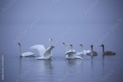 © kiyopayo, Obraz premium 屈斜路湖の白鳥の親子