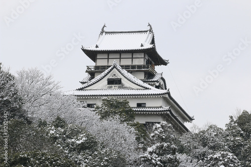 © tenboh siyaraku, Fototapeta premium 雪の犬山城 犬山城 冬の犬山城 国宝犬山城