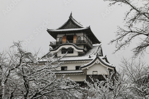 © tenboh siyaraku, Fototapeta premium 雪の犬山城 犬山城 冬の犬山城 国宝犬山城