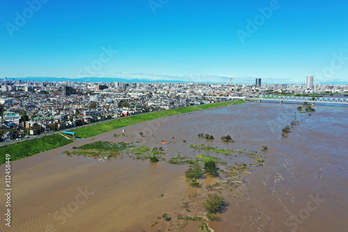 © dreamnikon, Fototapeta premium 増水した江戸川の空撮